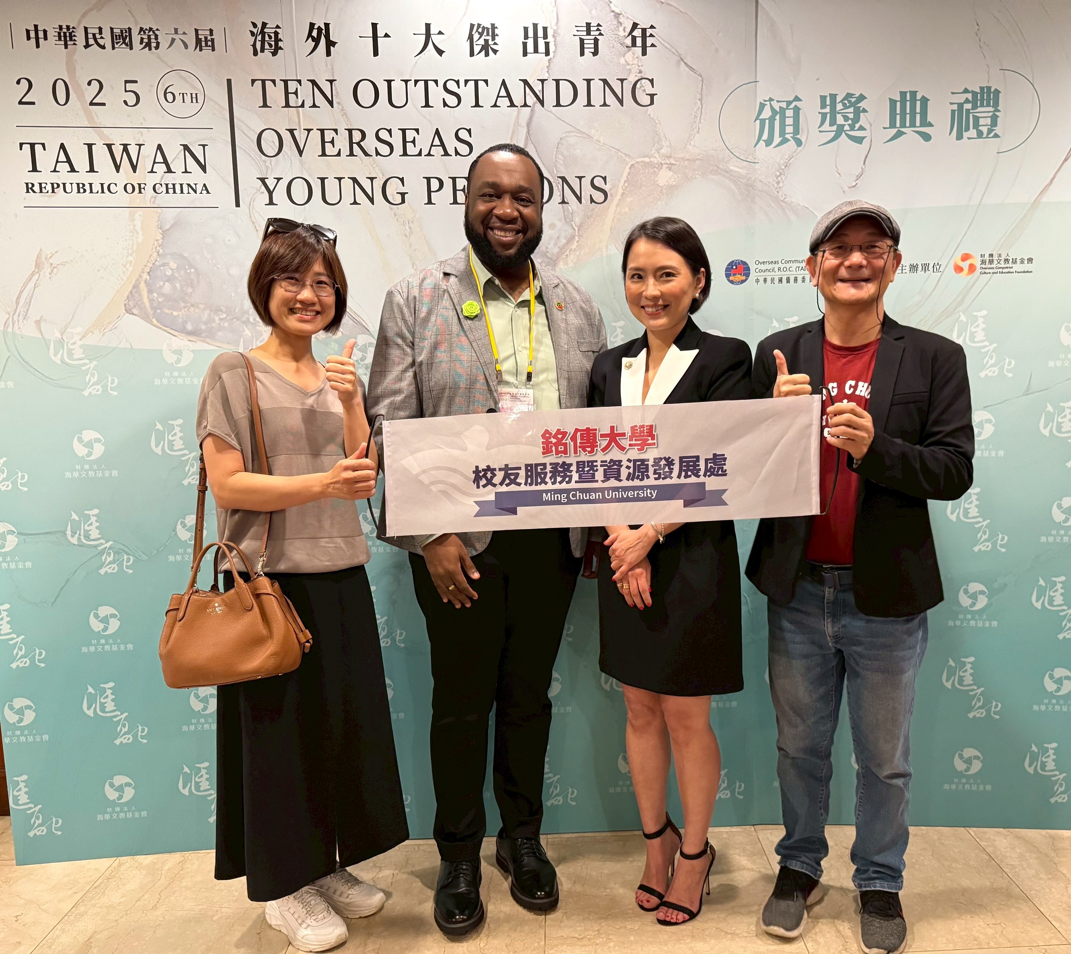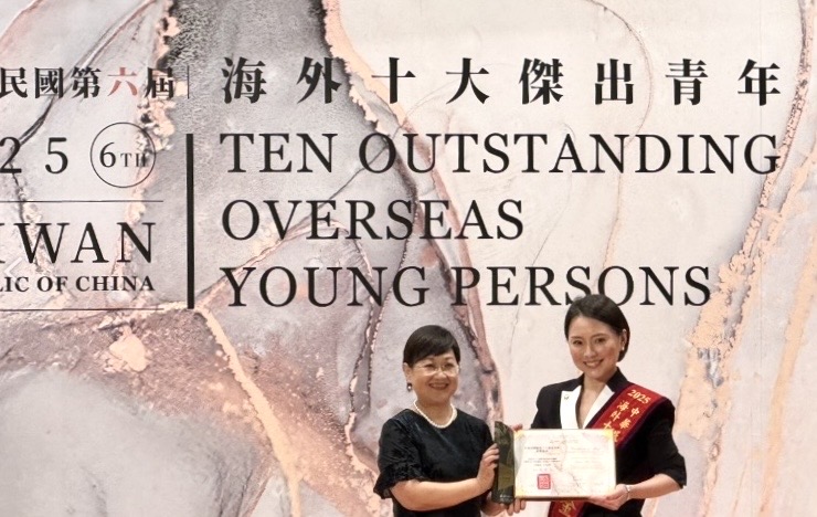 金曉昀校友,銘傳商業設計系91級畢業,憑藉卓越的專業成就與長期在南非投入國際社會的貢獻,榮獲僑委會海華文教基金會主辦的「第六屆海外傑出青年」殊榮。頒獎典禮於2025年10月1日上午10時在圓山飯店隆重舉行。金曉昀校友,現任南非 Avon Justine 公司品類總監,長期深耕商品企劃與市場推廣,致力推動在地合作與永續價值,展現卓越的職場領導力。近年來,她更積極整合南非與僑界資源,策劃多場深具影響力的文化與公益活動,包括主辦《璀璨台灣》文化演出、推動「Run for Taiwan」公益路跑,以及長期參與「曼德拉日慈善捐贈計畫」,展現其在國民外交與社會責任上的非凡成就。