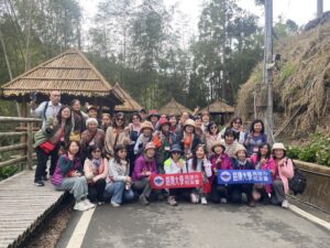 原本還擔心天氣不佳會影響行程,但天公作美憐惜校友們這股溫馨情誼,竟然天氣轉好陽光露臉,似乎在歡迎我們的到來。本次行程特別安排於草嶺午餐後轉搭2部中巴前往雲林、嘉義、南投交界的「雲嶺之丘」,司機兼導覽,沿途解說欣賞360度環繞的壯麗山景與夢幻竹林,並造訪有「台版嵐山」美譽的「五元兩角孟宗山竹林海秘境」。翠綠竹海隨風搖曳,彷彿置身武俠小說場景,讓人身心舒暢、流連忘返;這時也是展開手機大戰的時刻,此起彼落拍美照,忙得不亦樂乎,留下滿滿歡樂與回憶。