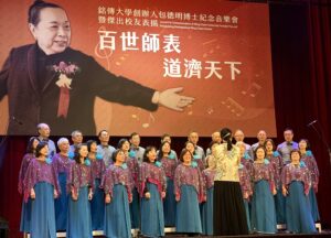 紀念音樂會特別邀請OSA合唱團演唱多首國內外經典名曲,並由台北市校友會千穗合唱團共襄盛舉,以溫潤和聲傳遞對包創辦人教育大愛的追思與感念。典禮中亦介紹OSA合唱團團長劉蓬醫師,並邀請陳啟明董事長、李銓總校長及沈佩蒂前校長一同參與合唱,台上台下情感交織,場面溫馨感人,充分展現銘傳人世代相傳的深厚情誼。